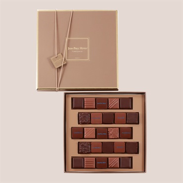 • カカオの風味豊かなガナッシュやナッツの香ばしい味わいを愉しめるプラリネを、口どけよいショコラでコーティング。エヴァンの代表作「トロワ オランジュ」や「サフィル」など人気のボンボン ショコラを含む25個季節の詰合せ。