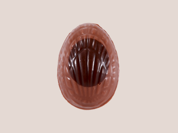 ウフ アマンド ピスターシュ レ片面ずつ異なる味わい。アーモンドのジャンドゥジャとピスタチオのプラリネをミルクチョコレートでコーティング。