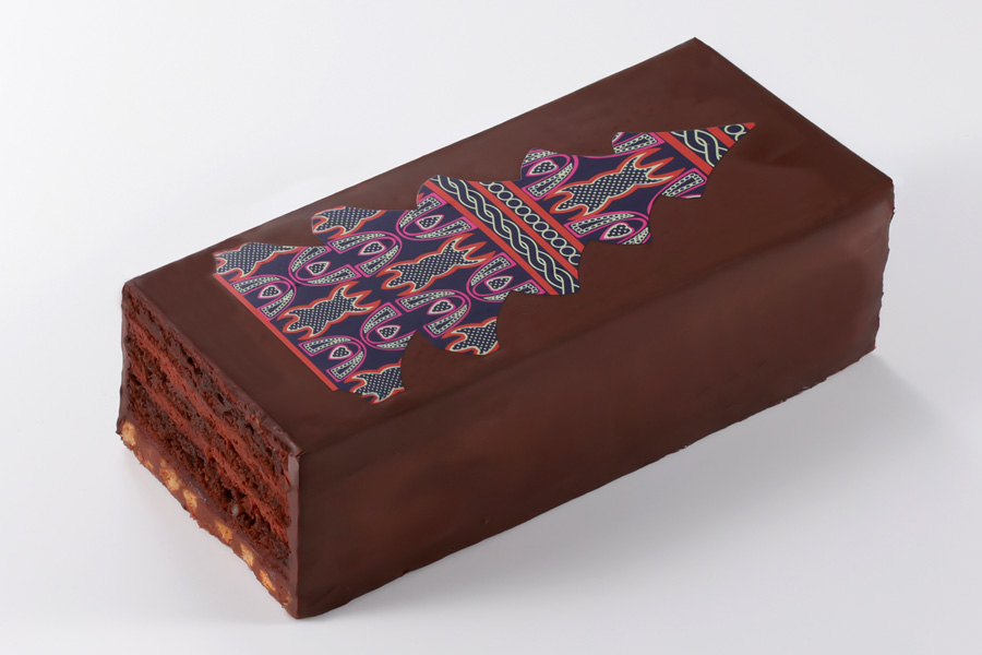「エヴァン エヌコロサンのカメルーン産のカカオのムースと、アーモンドとカカオのビスキュイ、アニスの甘い香りがほのかに広がるサクサクしたアーモンドとヘーゼルナッツのクルスティヤン。※冷凍配送でお届けします