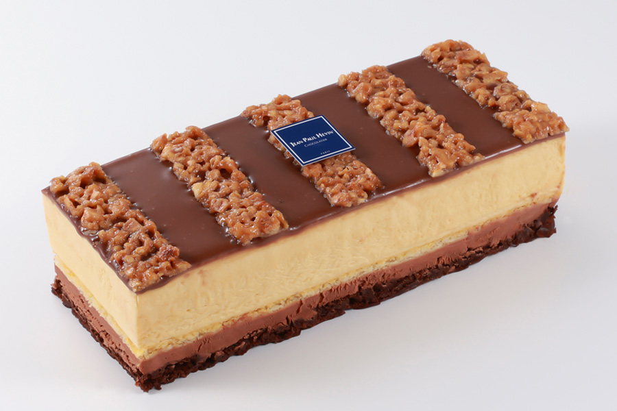 「ショコラとキャラメルの口当たり滑らかなムースとショコラのビスキュイ。 爽やかなオレンジのジュレとヘーゼルナッツのヌガティーヌがアクセントになっています。ほろ苦いキャラメルの余韻を愉しめる大人の味わい。※冷凍配送でお届けします