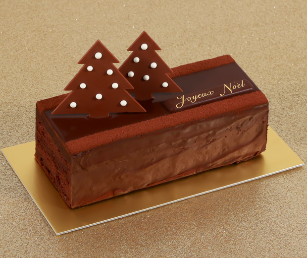 カカオとアーモンドが香るビスキュイと、濃厚なヴェネズエラ産カカオを使ったムースの組合せ。ジャン=ポール・エヴァンを代表するガトーに、ショコラでできたツリーのデコレーション。