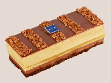 ビュシェット レクレ エヴァン エヌコロサンのカメルーン産カカオのムースと、キャラメルクリーム、ビスキュイショコラ、ヘーゼルナッツとキャラメル風味のミルクチョコレートのクルスティヤン