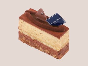 フォーブール ポワソニエール プラリネ サクサクした食感のヘーゼルナッツのサブレ、ヴェネズエラ産カカオのムースとアーモンドのビスキュイ、ヘーゼルナッツのプラリネのムース